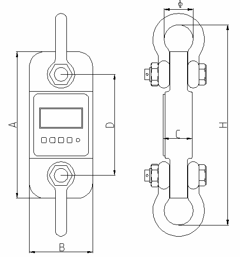 # 測(cè)力計(jì)本身提供4個(gè)按鍵:“開/關(guān)機(jī)”、“置零”、“峰值保持”、“單位切換”。